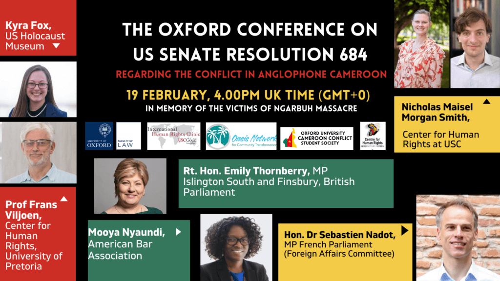 The conflict in Anglophone Cameroon has been the most neglected humanitarian crisis in the world for two consecutive years (Norwegian Refugee Council 2019, 2020). In recognition of the levels of violence, the US Senate has unanimously passed Resolution 684 (S. Res. 684). In the Resolution, the US Senate calls for an end to all violence, respect for the human rights of all Cameroonians, and the pursuit of a genuinely inclusive dialogue with a credible third party toward resolving the ongoing civil conflict in Anglophone Cameroon.
